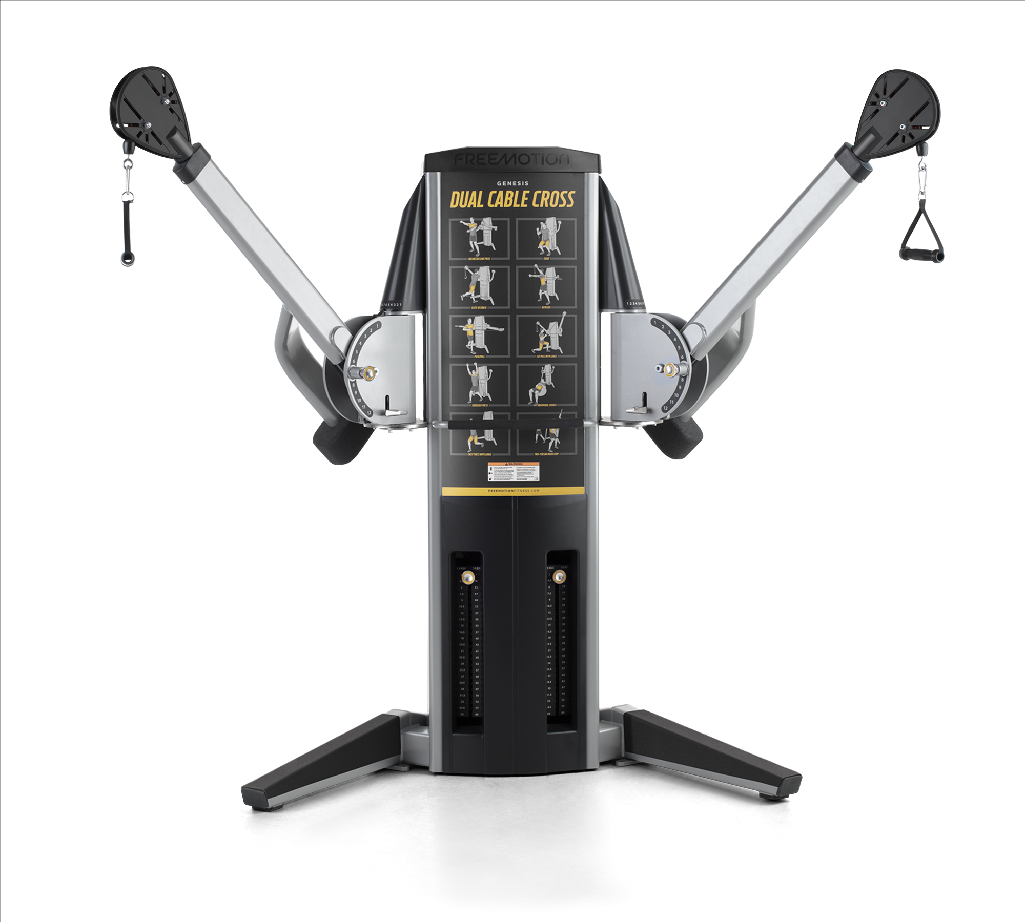 Arms adjust both vertically and horizontally. This ability to precisely position the handles allows users to mimic nearly any movement in life or sport.