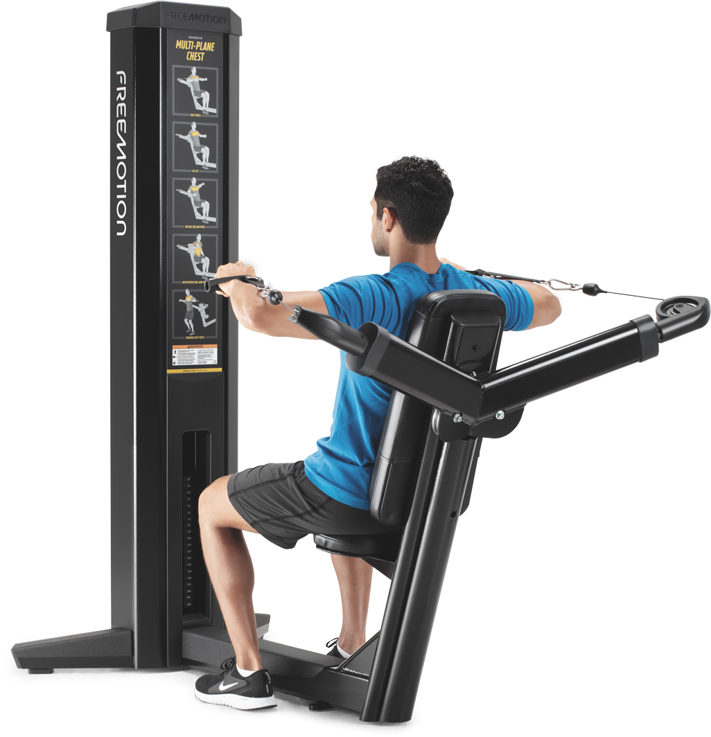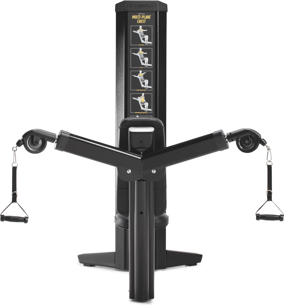 The GENESIS Multi-Plane Chest embodies the best in cable-based functional training. It can accommodate movement progressions from seated to standing and from one arm to two, with full range of motion. This versatility gives trainers (and users) the ability to program just about any sport- or life-specific exercise through all planes of movement. Add a bit more challenge by exercising standing behind the machine, adding rotation or including accessories like stability balls to test balance.