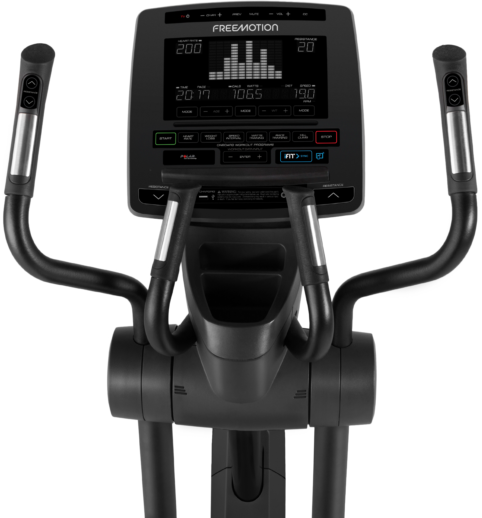 Low impact, all adventure. The e10.9b Elliptical comes with a simplified console that can be upgraded with the addition of a smart device. Sync the iFIT-compatible machine with a smart device and the elliptical will match the resistance to recreate the actual route on the screen. The elliptical's foot placement makes the run, walk or ski easier on the knees, joints and back.