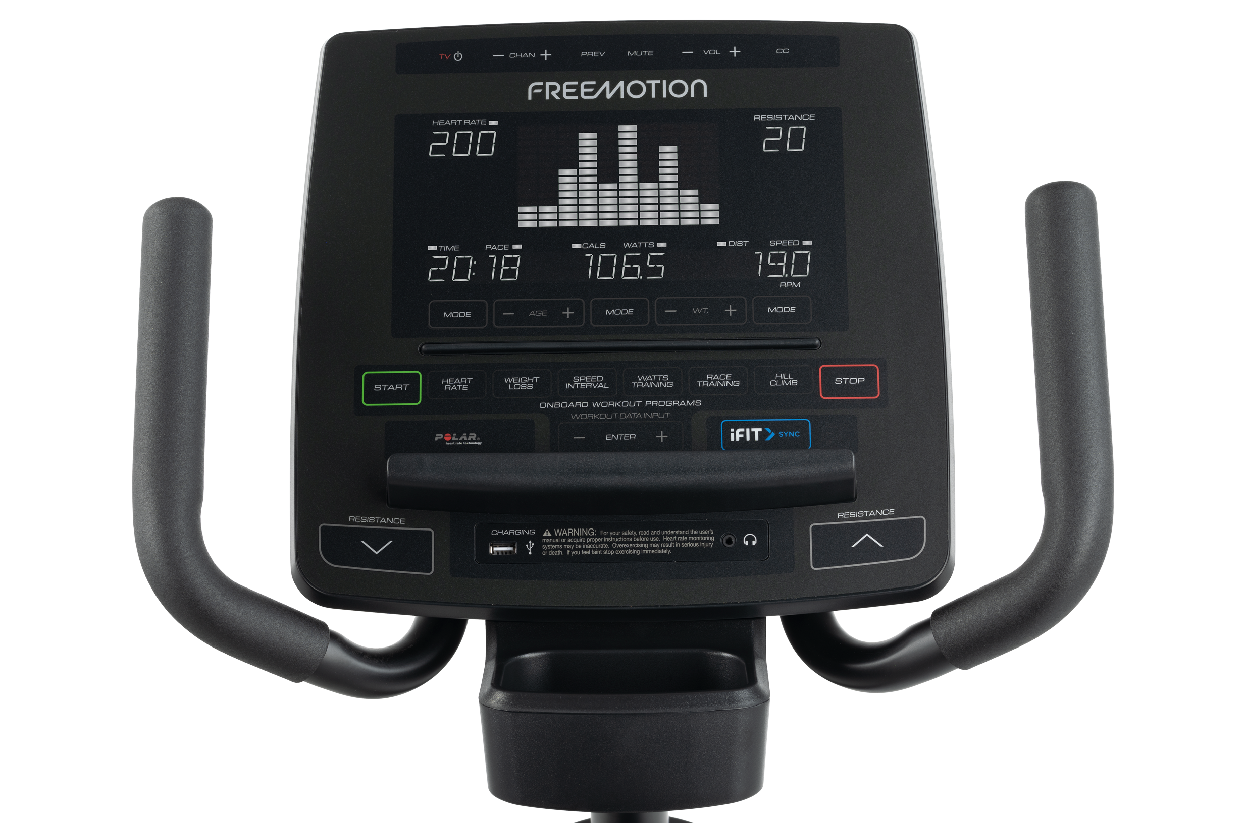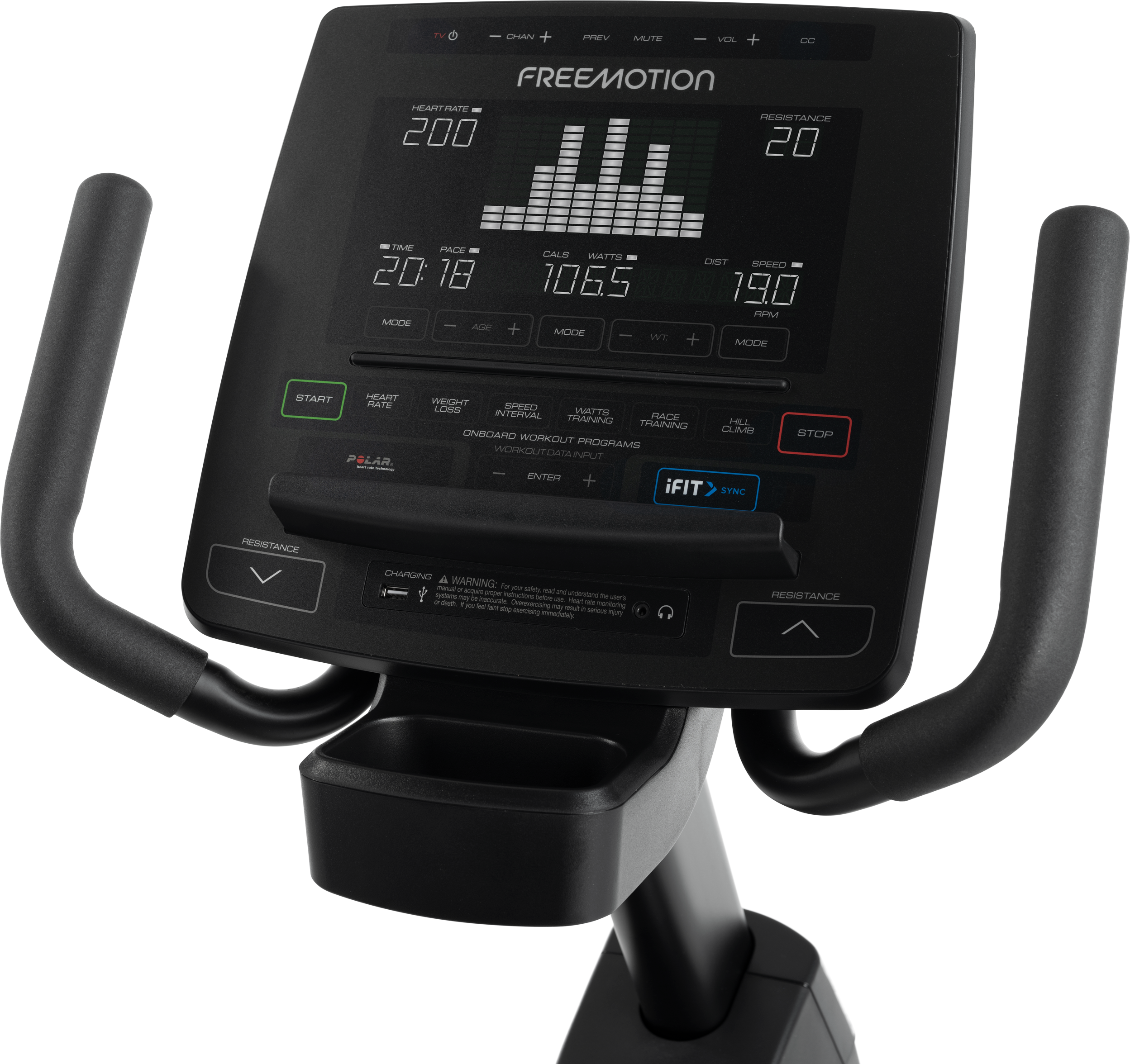 Members can keep an eye on everything that keeps them motivated: RPM/speed, distance/time, watts/calories, level and heart rate on the simplified user interface.