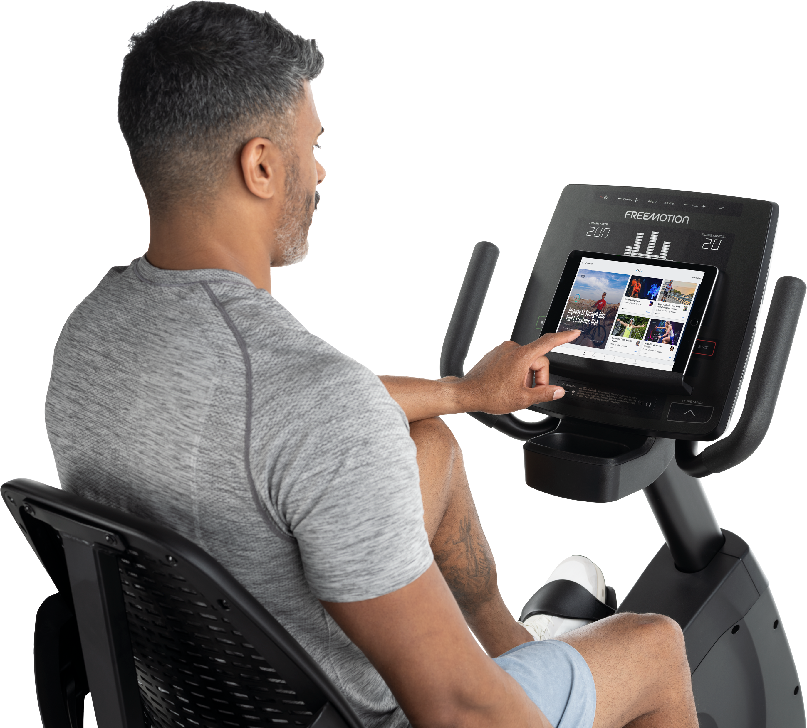 Entertainment capabilities make the workout experience even better. Add an optional 15.6 in (39 cm) Personal HDTV Screen.