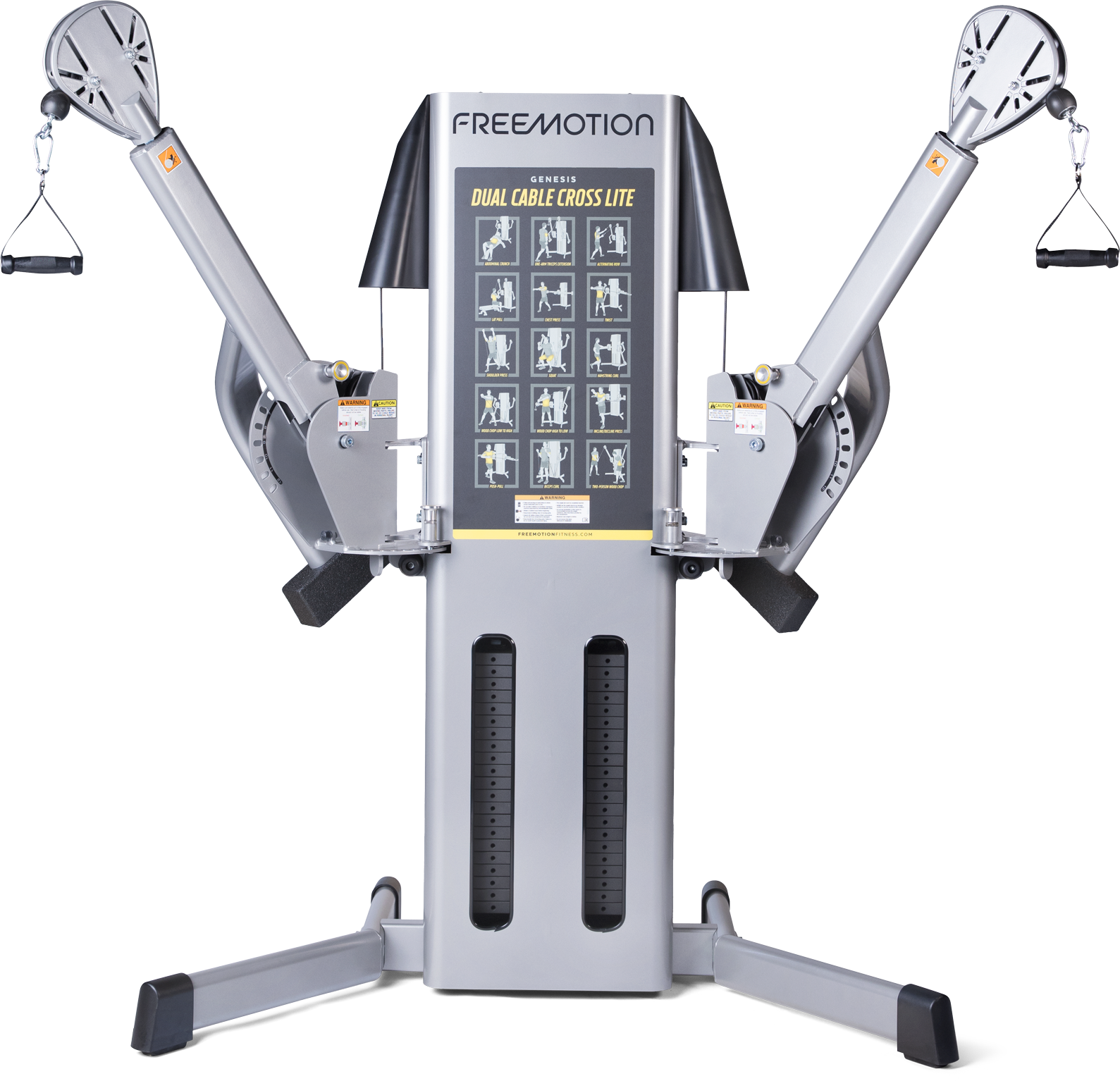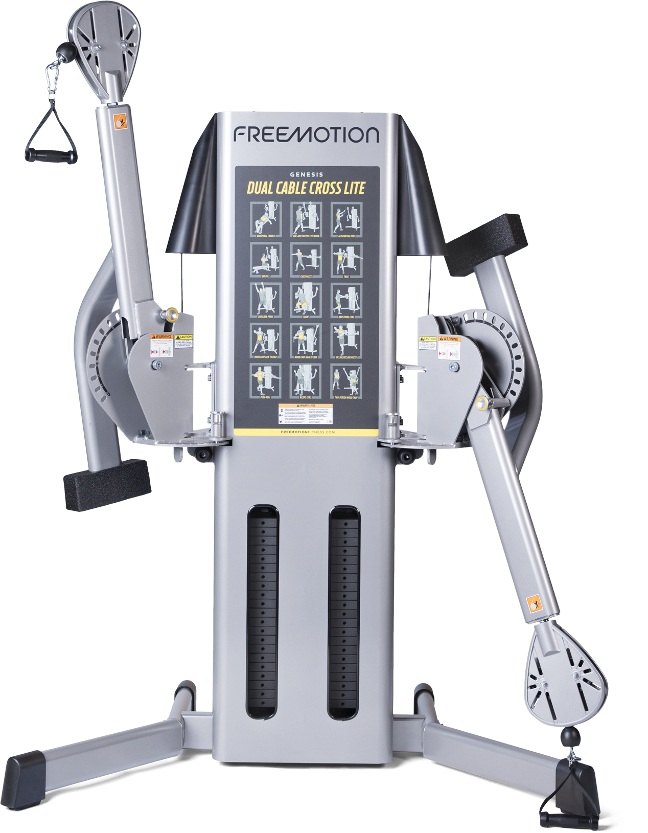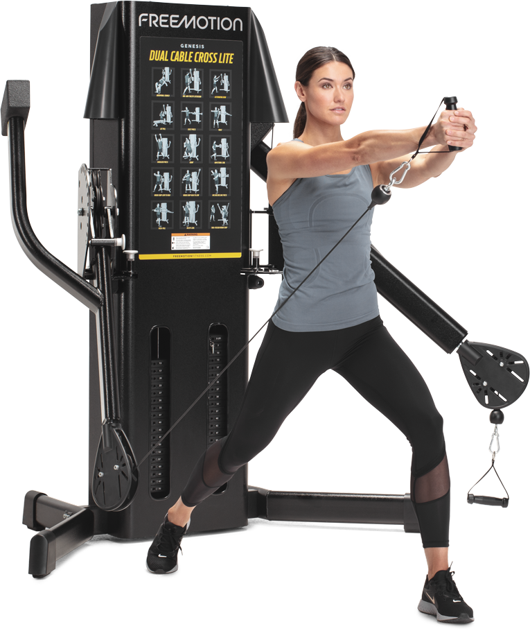 While the Dual Cable Cross Lite is smaller, it doesn't sacrifice any of the quality construction or durability known in the GENESIS line. Built with heavy duty steel with an electrostatic powder-coated finish, this unit can live up to the rigors of any weight room. Precise adjustments, swivel pulleys and extensive cable travel let users perform virtually and movement pattern experienced in life or sport.
