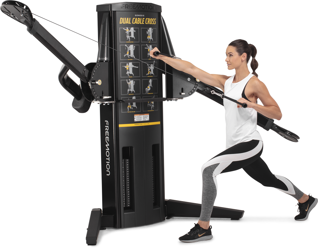 Programming exercise on the GENESIS Dual Cable Cross, is only limited by imagination. Independent weight stacks allow for varying resistance per handle. Arms adjust vertically and horizontally with independently moving handles. All of this versatility lets users perform functional movements to mimic life and sport. The open design allows for wheelchair accessibility to accommodate a wide variety of users.